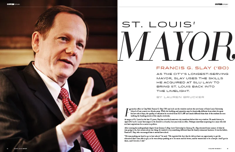 Full-color, bi-annual alumni magazine for Saint Louis University School of Law. 20,000 copies printed annually. Cover: Mohawk Loop, Smooth, Pure White, 80# cover; Interior: Endurance Silk Book, 70# text.